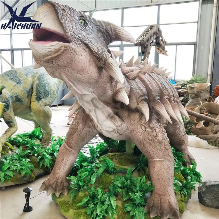एंकिलोसॉरस, एक स्वर्गीय क्रेटेशियस डायनासोर जिसे एक छोटे टैंक के रूप में जाना जाता है। इसकी पीठ पर कवच प्लेटें और एक पूंछ हथौड़ा है।