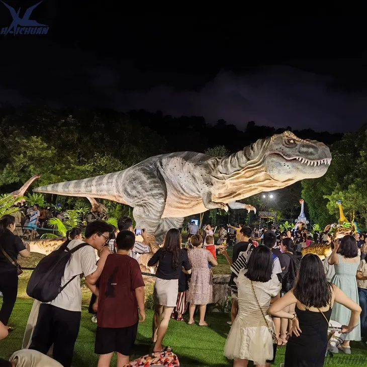 यह एक 12-मीटर लंबा विशाल टायरानोसॉरस रेक्स मॉडल है, और हम इसे हाथ से बनाते हैं, इसलिए डायनासोर बनाने में 25-30 दिन लगते हैं। यह टायरानोसॉरस रेक्स एक बेहतर सर्वो मोटर ड्राइव का उपयोग करता है, इसलिए गति को अधिक सटीक रूप से नियंत्रित किया जा सकता है।
